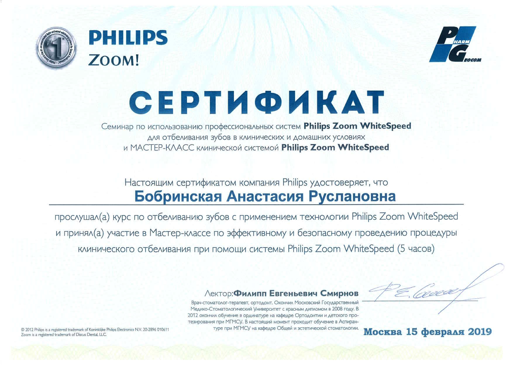 2019 г. Семинар и мастер-класс по клинической системе отбеливания зубов Philips Zoom WhiteSpeed