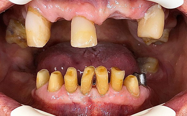 Пациентка проходила длительное лечение в другой клинике, но результат её не устроил. Было трудно открывать рот, болела челюсть. Поэтому она обратилась в Немецкий Стоматологический Центр.