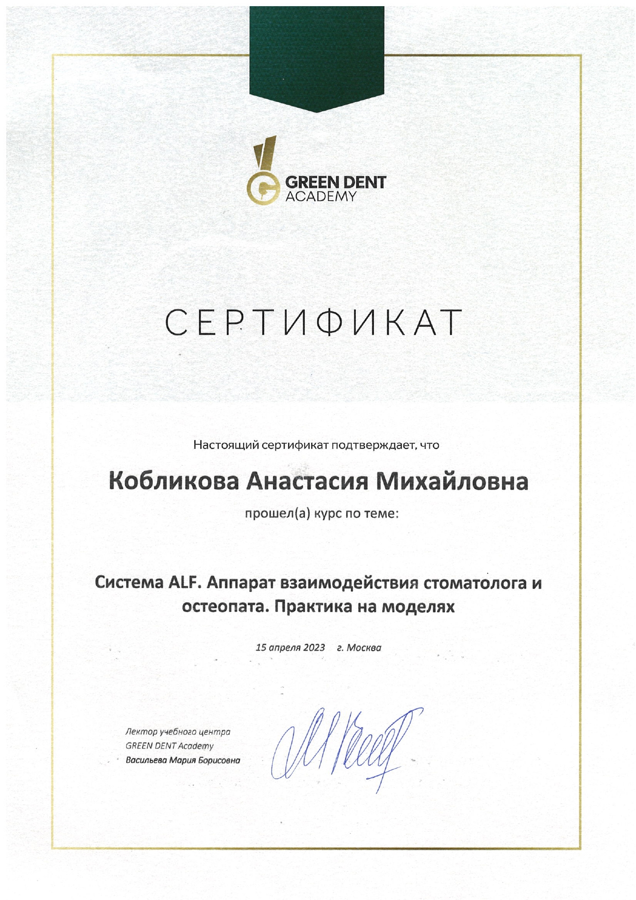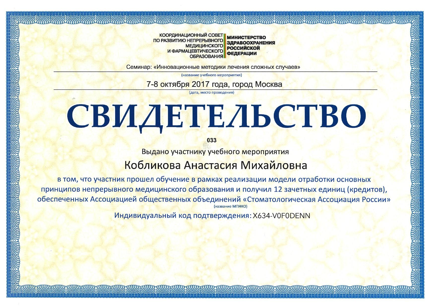 15.01 была на приеме у Кобликовой Анастасии Михайловны. Лечиться у нее начали давно всей семьей. Что можно сказать за долгие годы нашего сотрудничества: Анастасия Михайловна – ортодонт от бога. Все расскажет, покажет и объяснит на доступном языке. Я уверенно готова рекомендовать ее, как специалиста высшего класса, своим друзьям и знакомым!