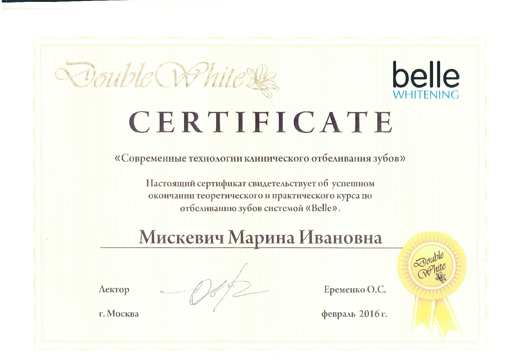 2016 г. «Современные технологии клинического отбеливания зубов».
