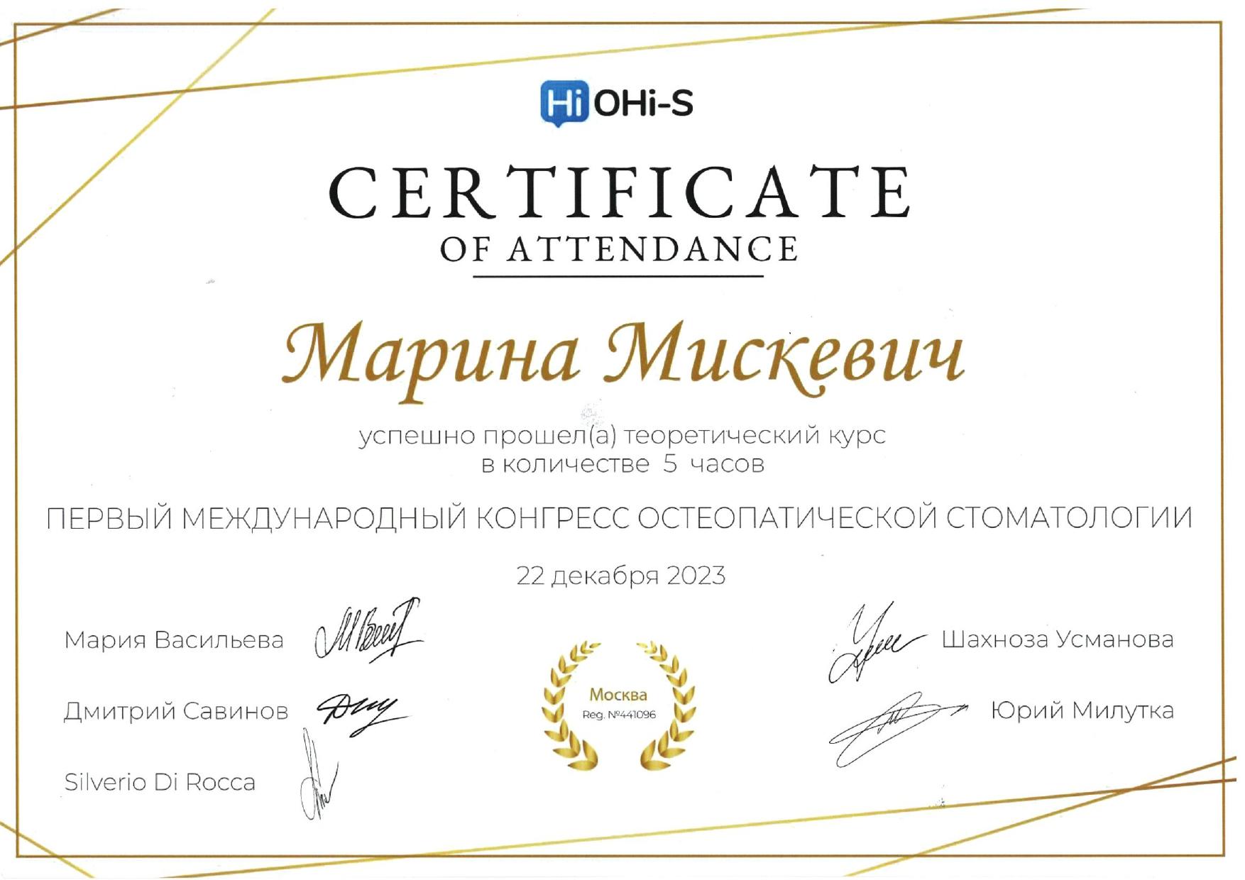 2023 г. «Первый международный конгресс остеопатической стоматологии»