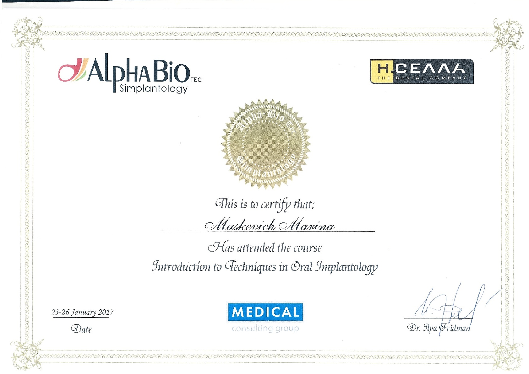 2016 г. «Introductional to Technigues in Oral Implantology». Alpha-Bio.