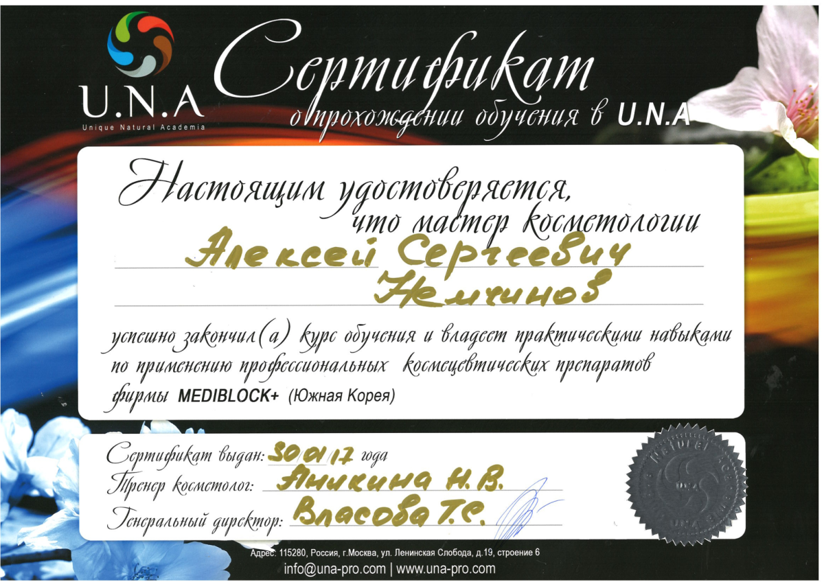 2017 г. Курс «Применение профессиональных космоцевтических пропаратов фирмы MEDIBLOCK+ (Южная Корея)»