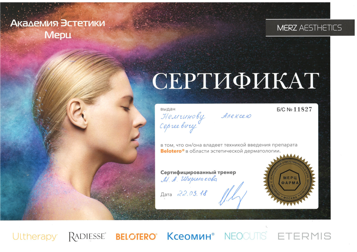 2018 г. Обучение «Техника введения препарата Belotero® в области эстетической дерматологии.»