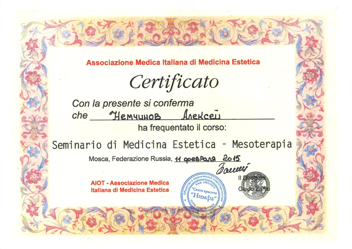 2015 г. Семинар «Seminario di Medicina Estetica - Mesoterapia»