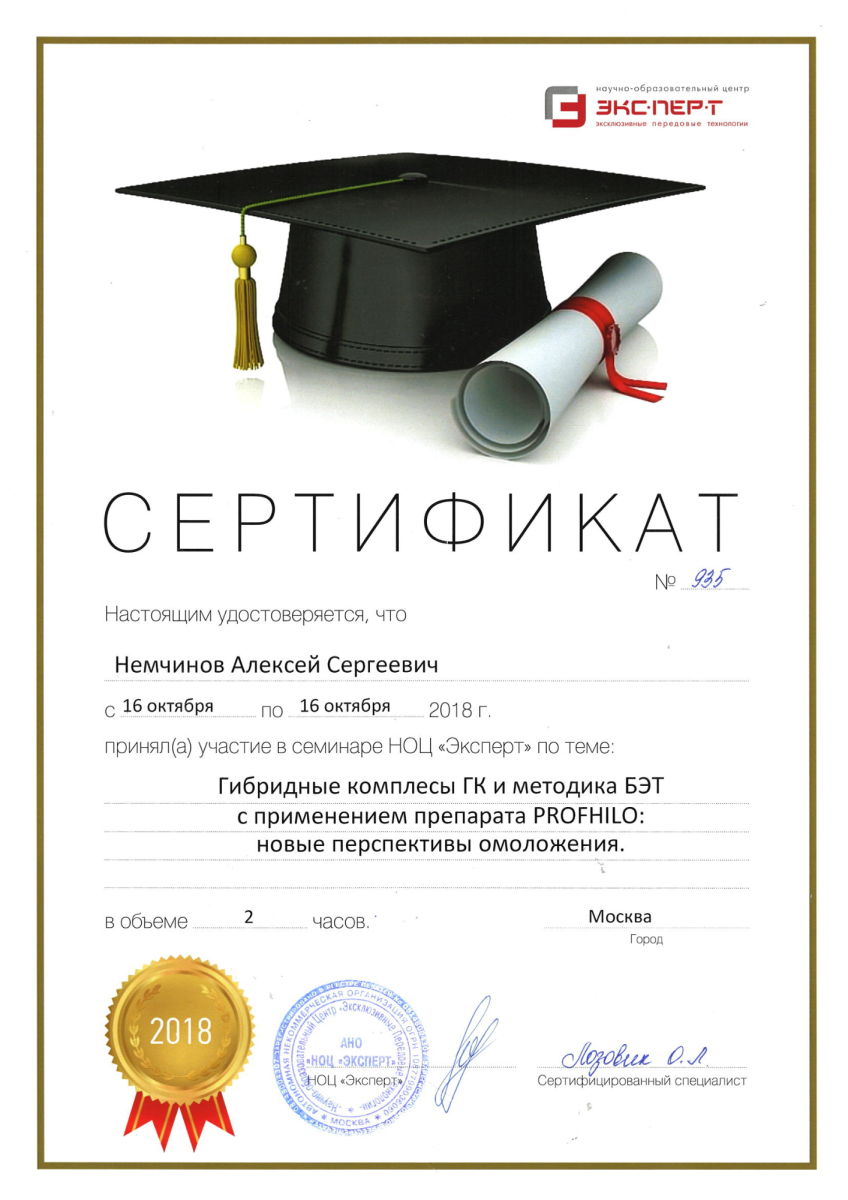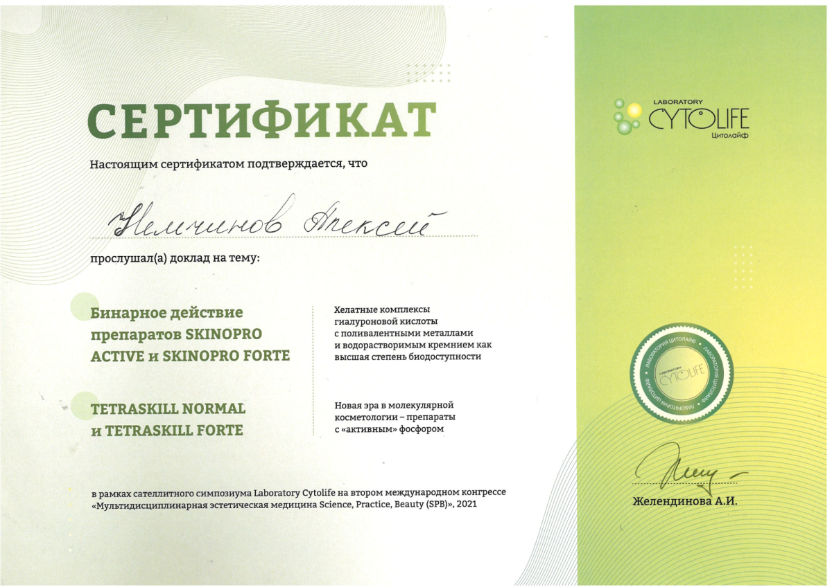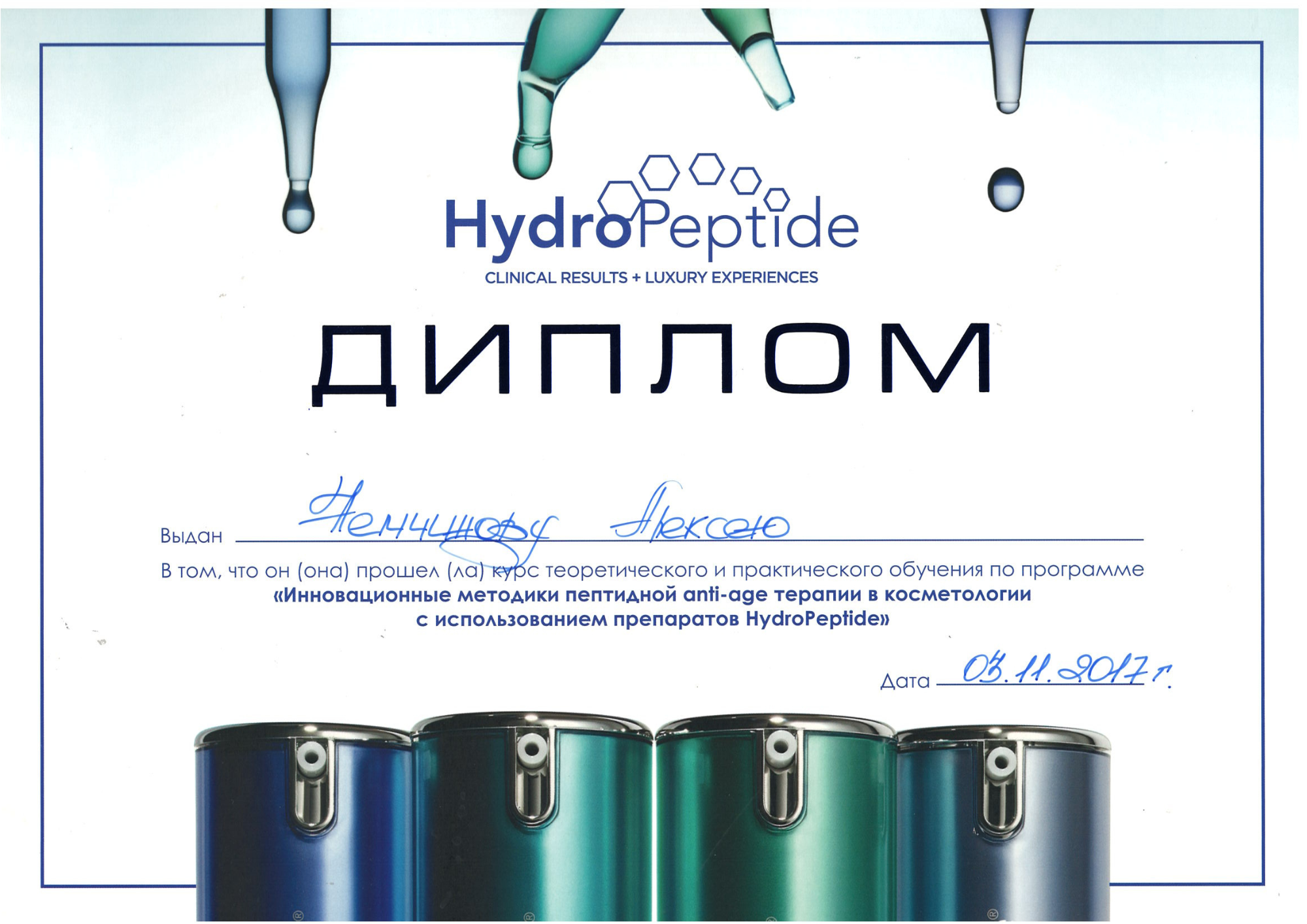 2017 г. Обучение «Инновационные методики пептидной anti-age терапии в косметологии с использованием препаратов HydroPeptide».