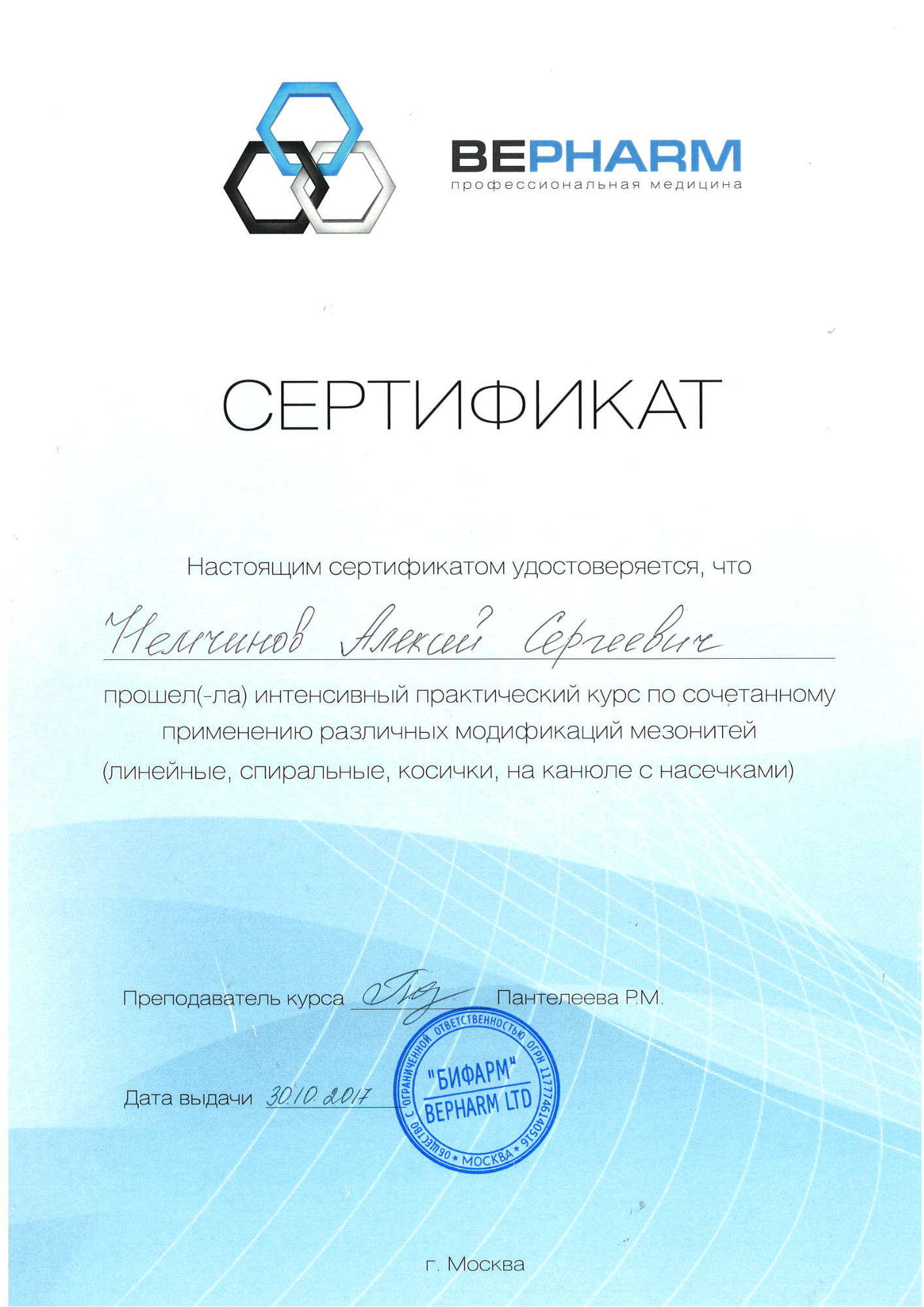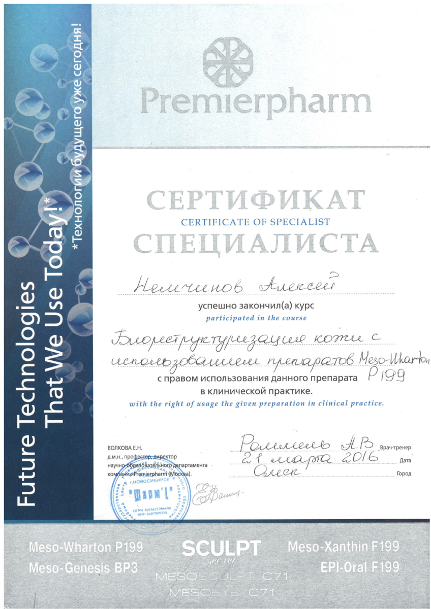 2016 г. Курс «Биореструктуризация коди с использованием препаратов Meso-Uharton с правом использования препарата Р199 в клинической практике»