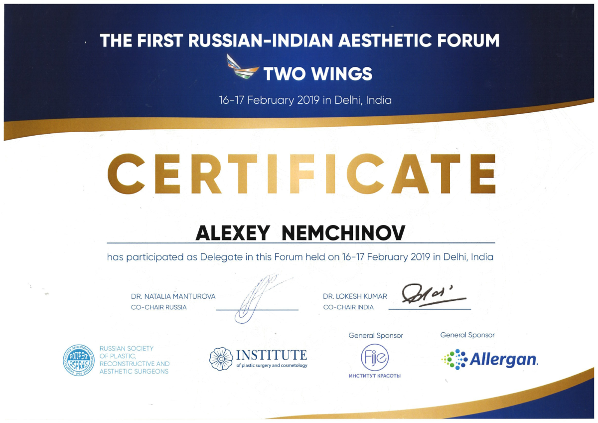 2017 г. Обучение по применению эндогенной регенеративной технологии Endoret® (prgf®) в области эстетической косметологии и дерматологии.