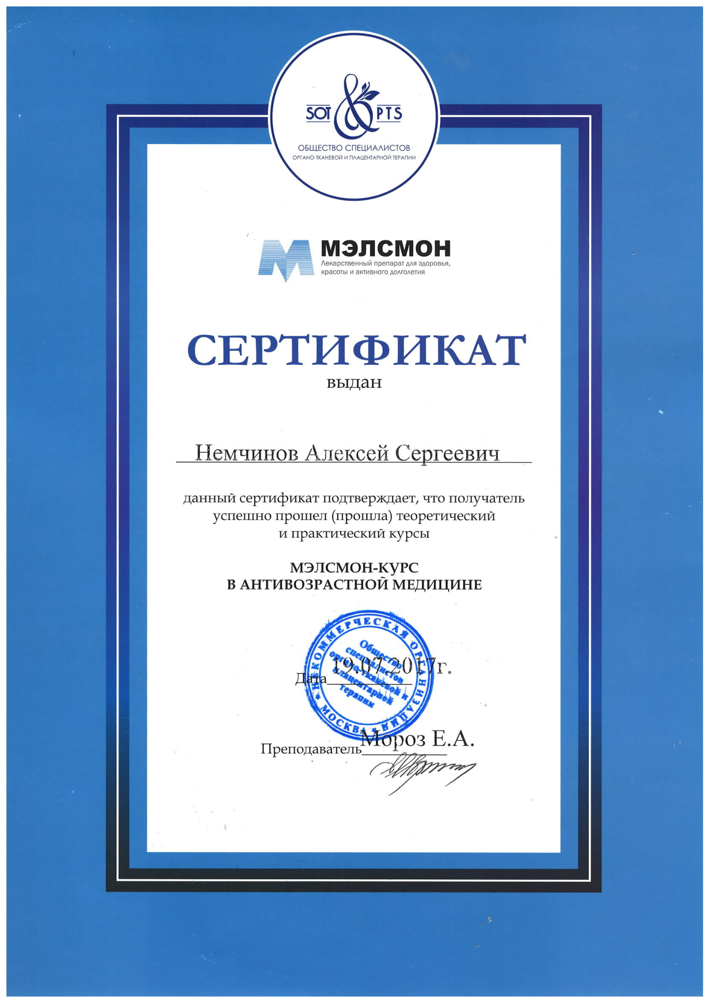 2017 г. МЭЛСМОН-КУРС В АНТИВОЗРАСТНОЙ МЕДИЦИНЕ