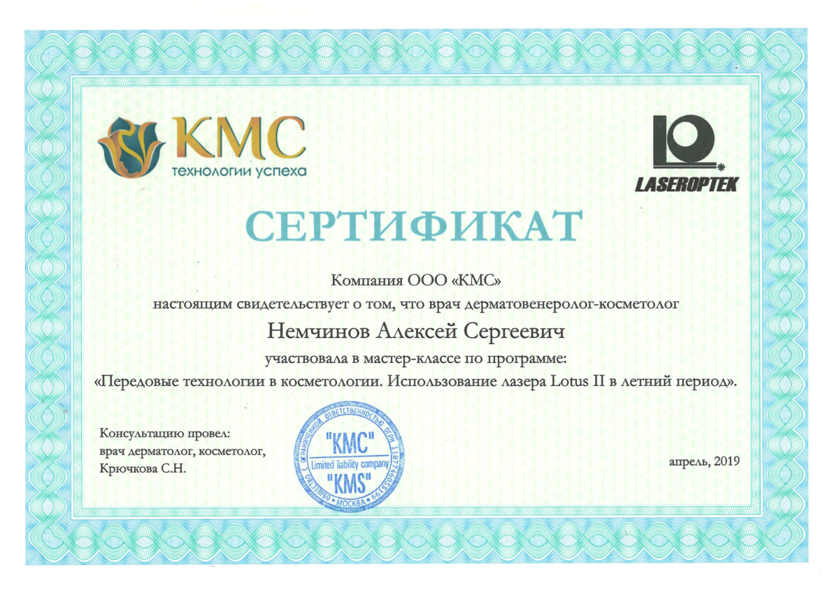 2019 г. мастер-классе по программе «Передовые технологии в косметологии. Использование лазера Lotus II в летний период».