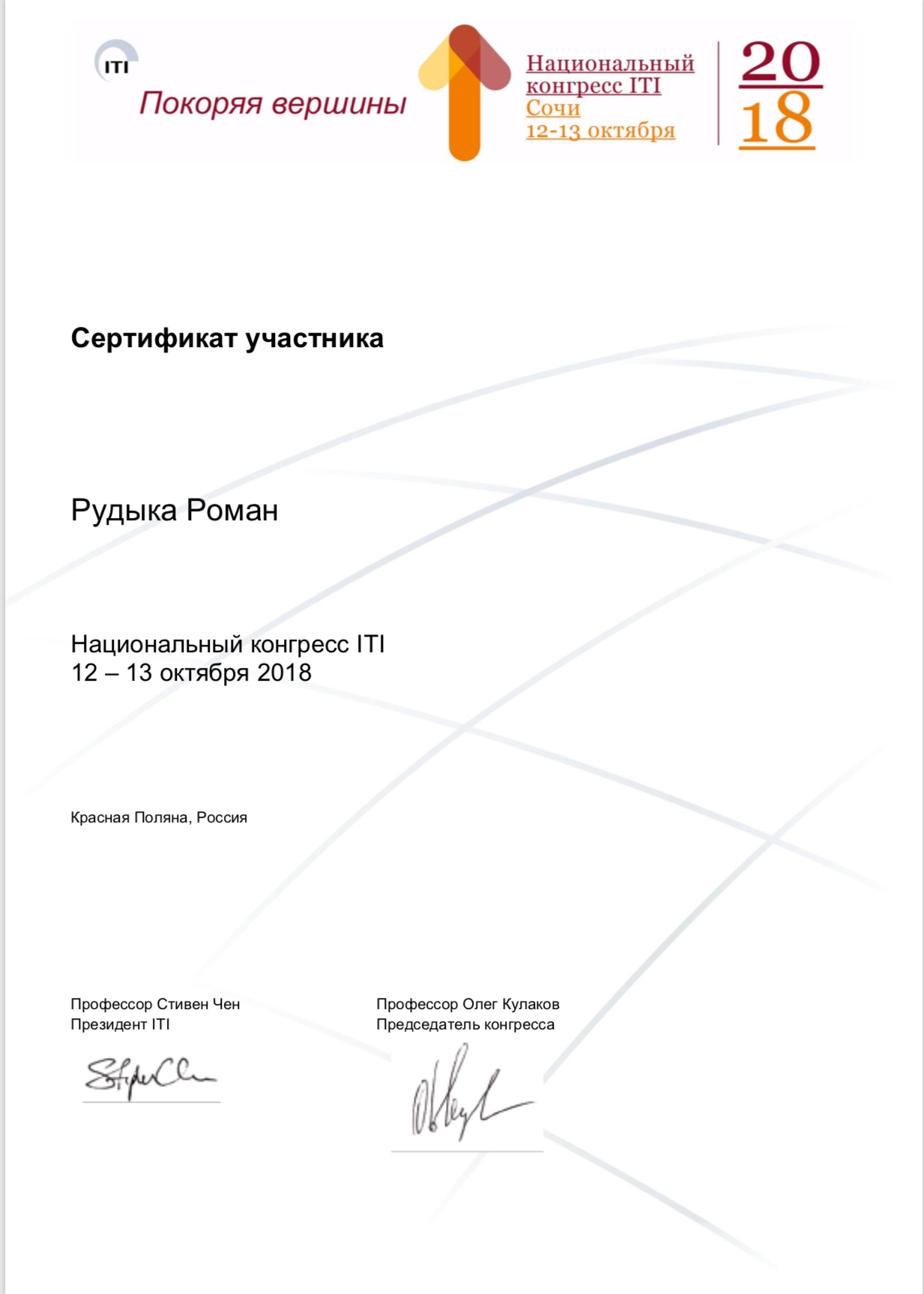 2016 г. — участник Имплантологического конгресса «Все в один этап (VV1E)».