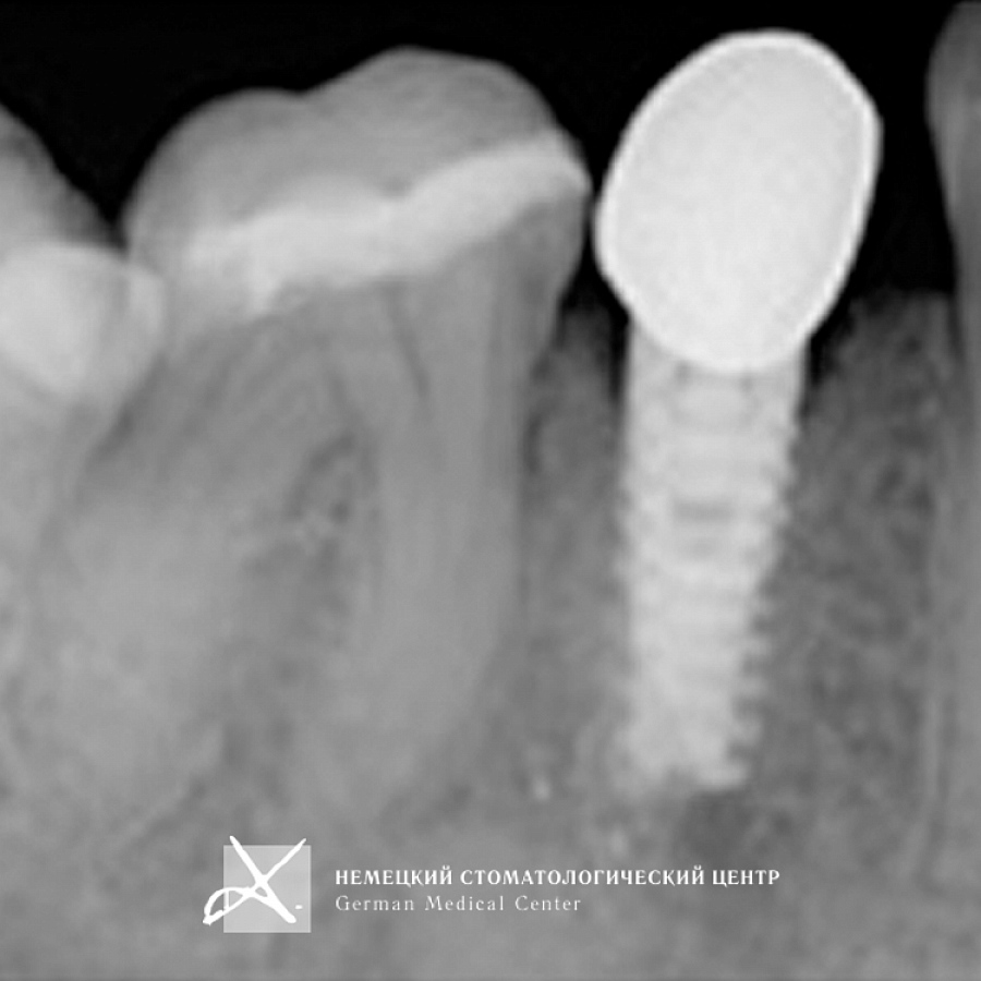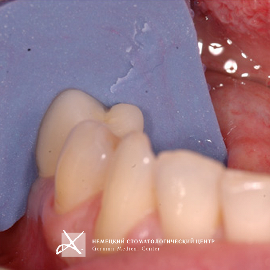 Учитывая тот факт, что диаметр имплантата практически всегда вынужденно меньше диаметра восстанавливаемого зуба в данной анатомической области, чтобы получить максимально эстетический и функциональный результат, было сделано: