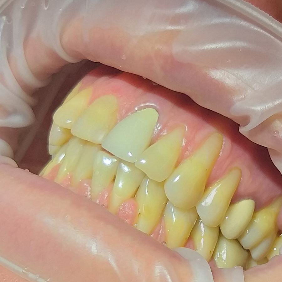 Поставлен диагноз генерализованная рецессия десны в области зубов верхней и нижней челюстей, аномалии положения зубов