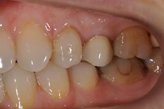 Проведено 'стетико-функциональное восстановление зуба №25 на импланте с использованием индивидуального абатмента из оксида циркония и коронки с каркасом из аналогичного материала. отсутствия одного зуба.