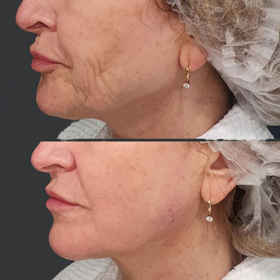 Пациентка 54 года обратилась с задачей подтянуть лицо без хирургического вмешательства.
