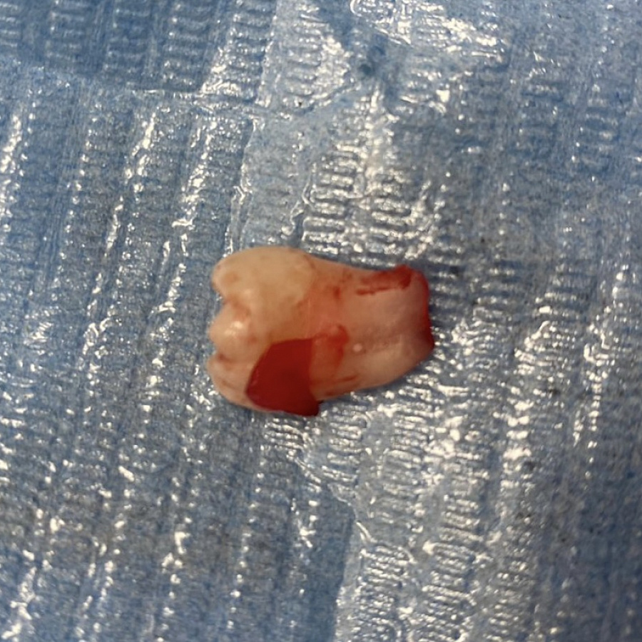 В лунку обязательно нужно было положить PRF (сгусток крови, который мы берём у пациента до удаления зуба и центрифугируем в специальном аппарате). Это необходимо для более благоприятного и прогнозируемого заживления.
