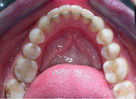 Лечение проводилось с помощью вестибулярных керамических брекетов, было завершено в течение 15 месяцев.