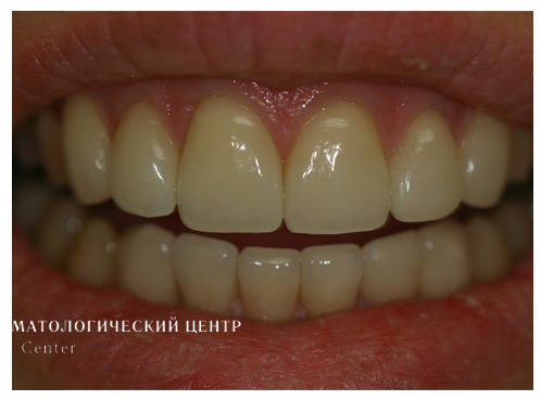 Пациентка (24 года) после ортодонтического лечения обратилась с желанием сделать зубы красивее и эстетичнее.