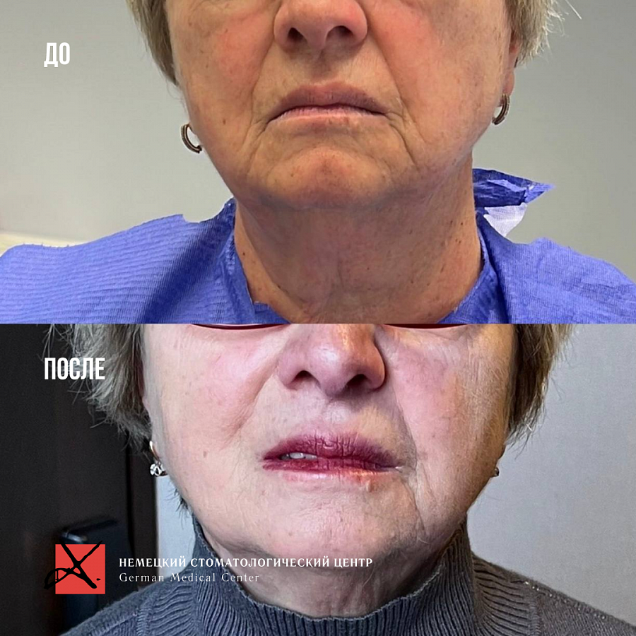Важно подчеркнуть, что это именно совместная работа косметолога и стоматолога. Без изначального лечения зубов такого эффекта достичь не получилось бы, т.к. правильное положение зубов играет очень важную роль в процессе омоложения лица.