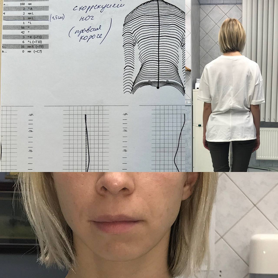 Был использован ортотик и коррекционные стельки, что позволило восстанавливить симметрию лица и тела. Результаты на фото говорят сами за себя