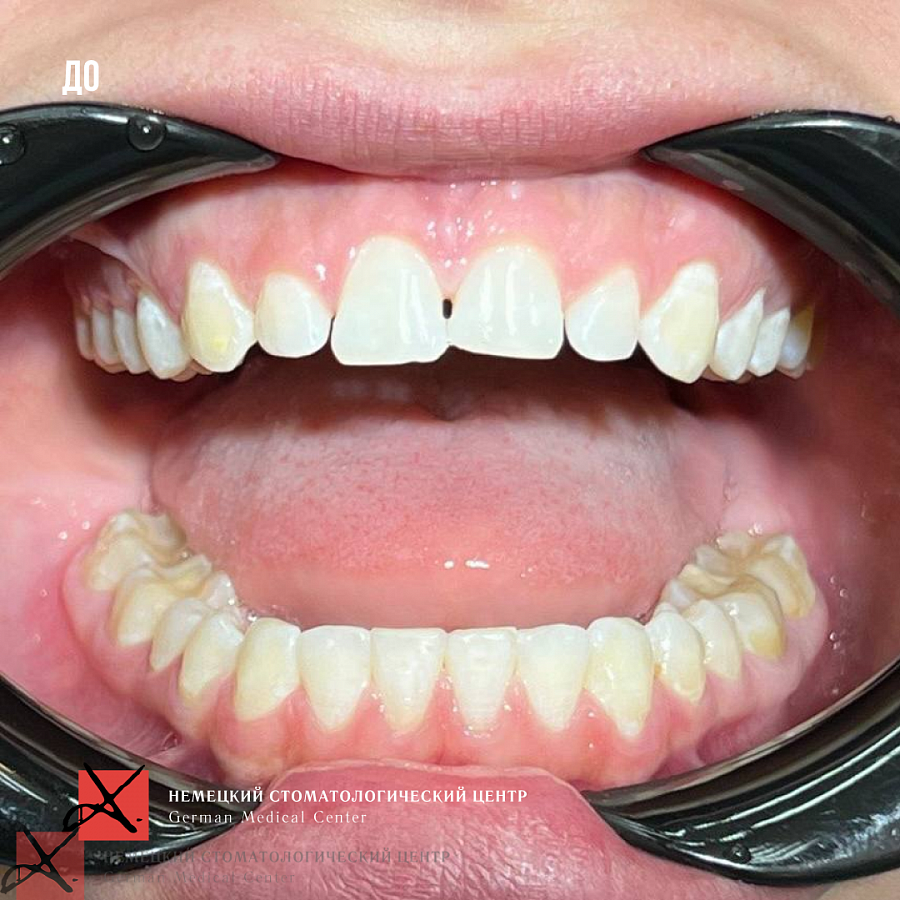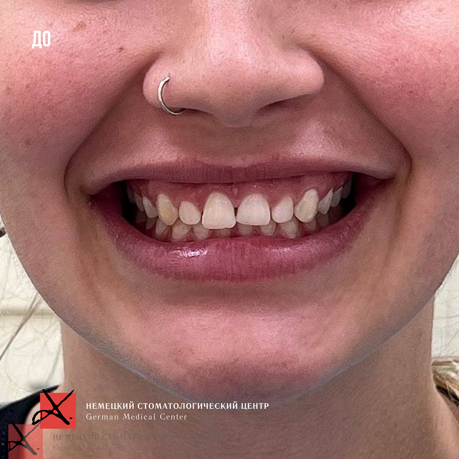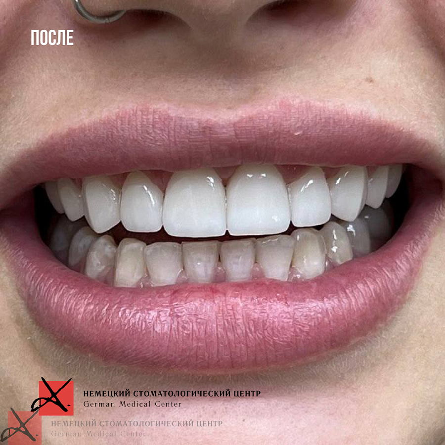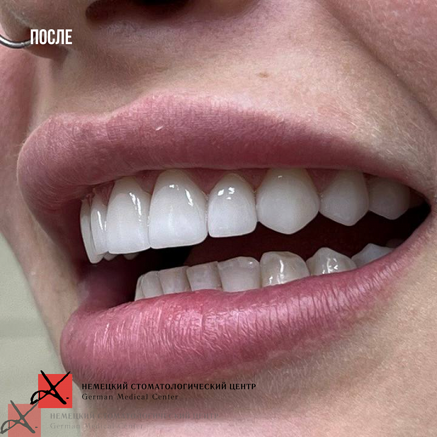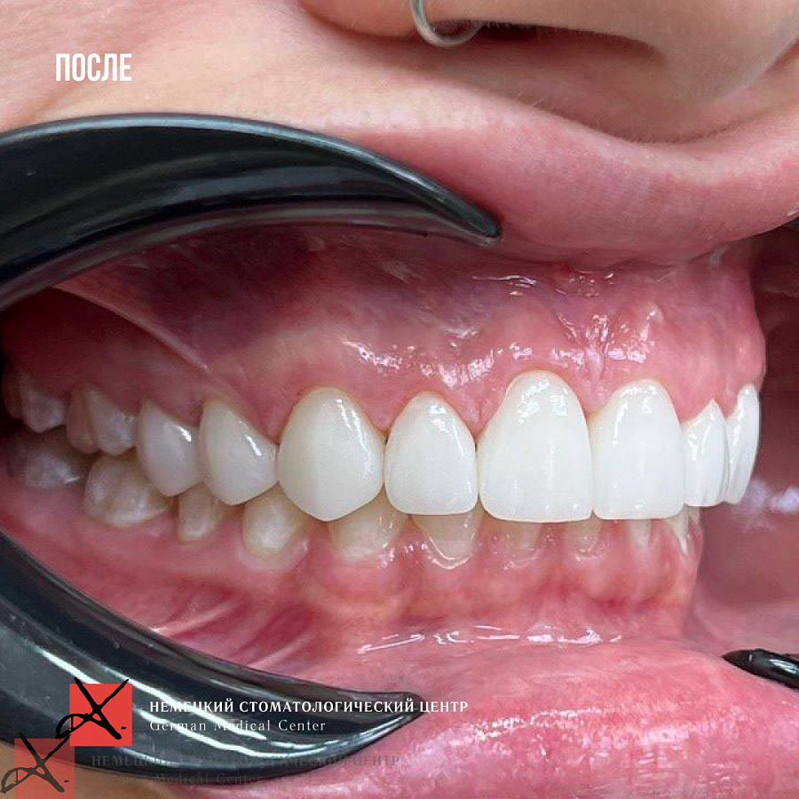 - Провели ортодонтическое перемещение зубов в правильной проекции.