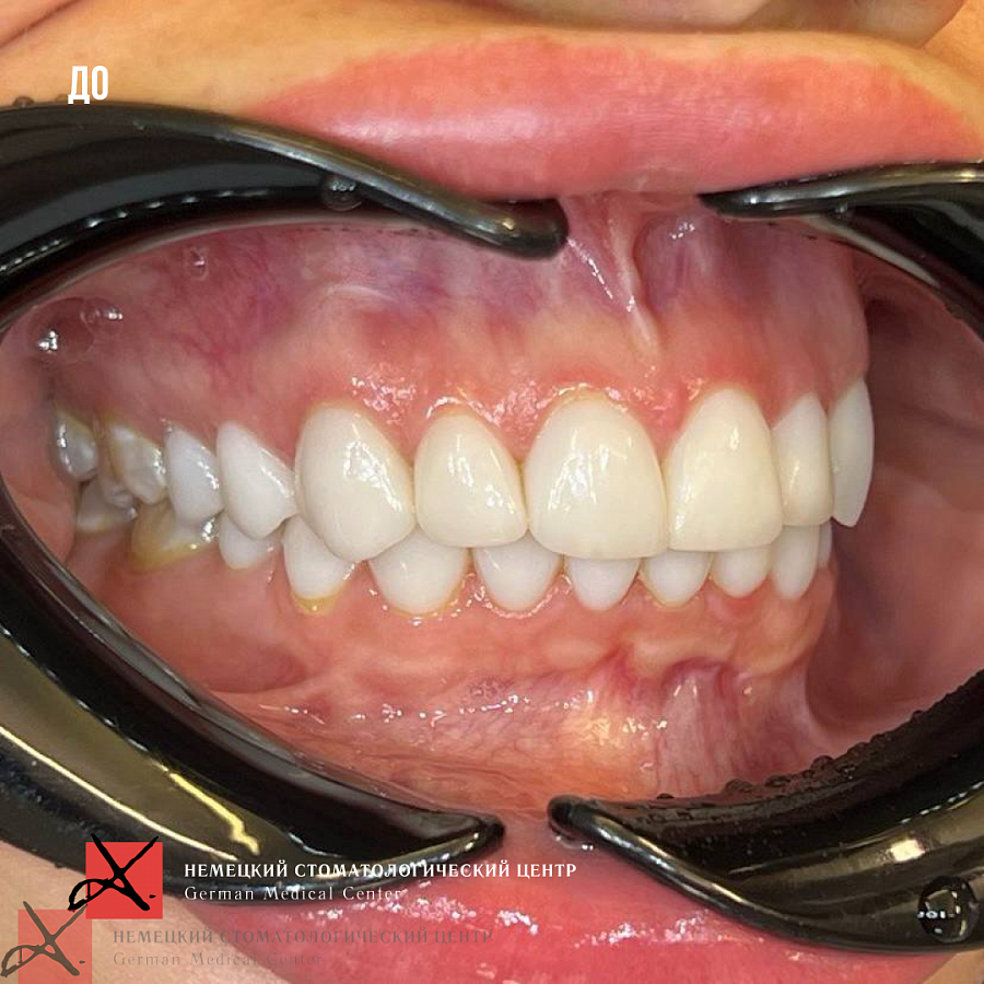 После установки виниров в другой клинике у пациентки появились боли в ВНЧС, поэтому она обратилась к нам.