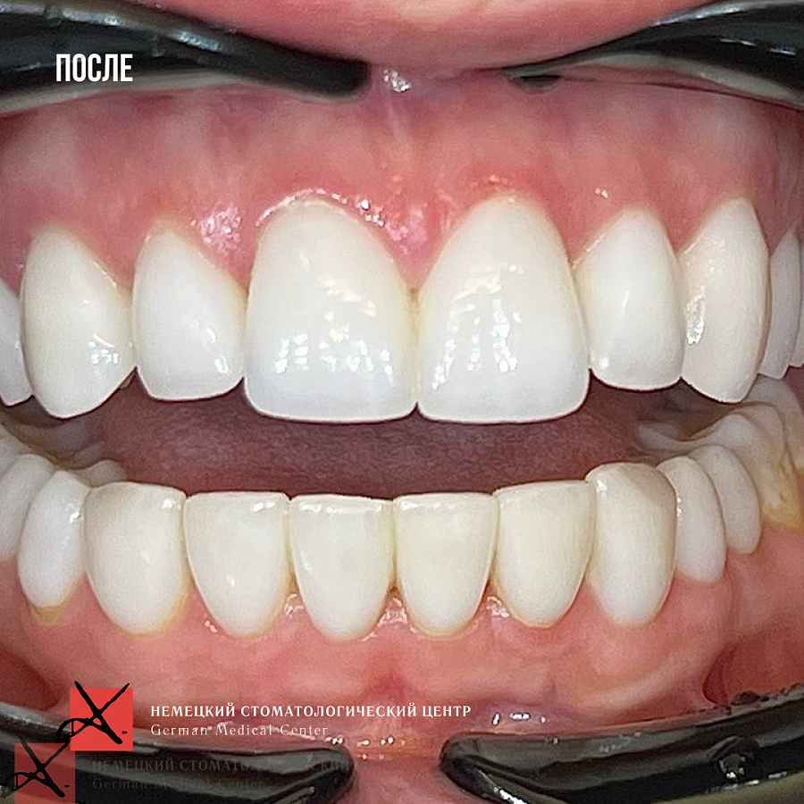 В результате получили идеальную улыбку и красивые белые зубы, отсутствие дискомфорта и боли в области суставов.