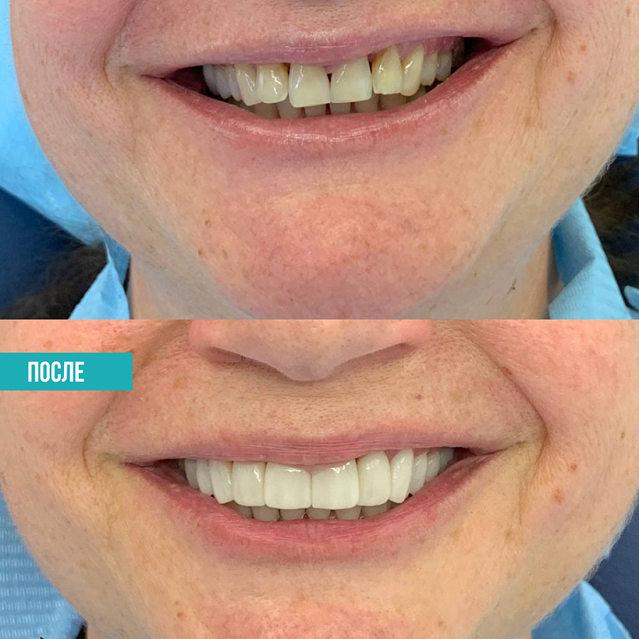 Проведена полная диагностика зубочелюстной системы. Оказалось, что данная патология возникала из-за неправильного проведенного ранее протезирования, что привело в том числе к повышенной стираемости зубов в течение длительного периода жизни.
