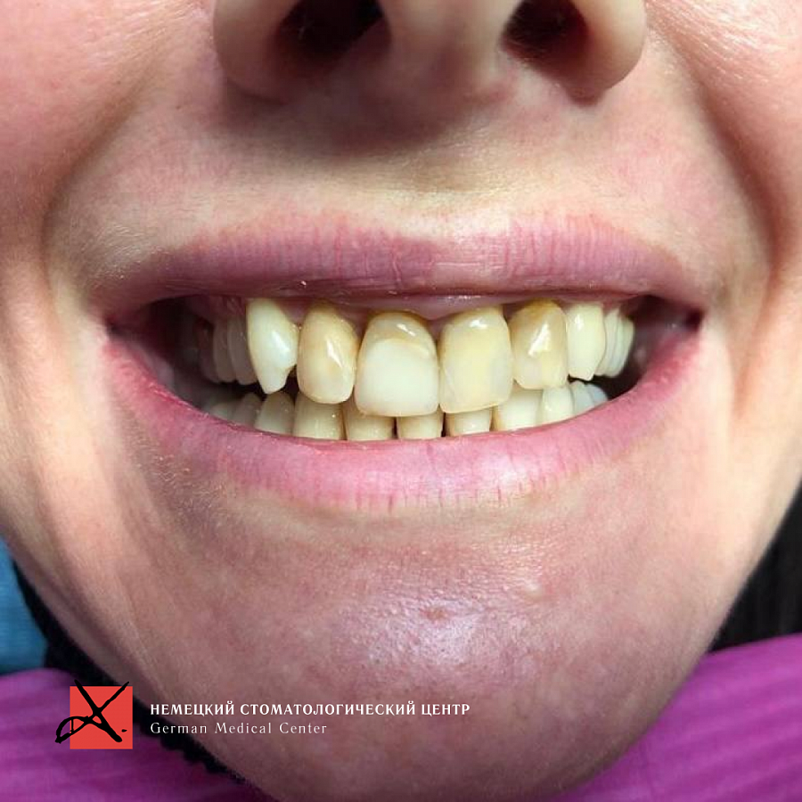 Пациентка обратилась в первую очередь из-за эстетически некрасивого вида зубов.