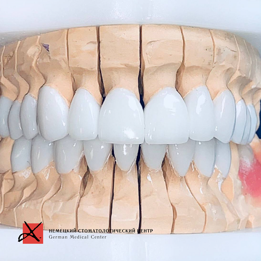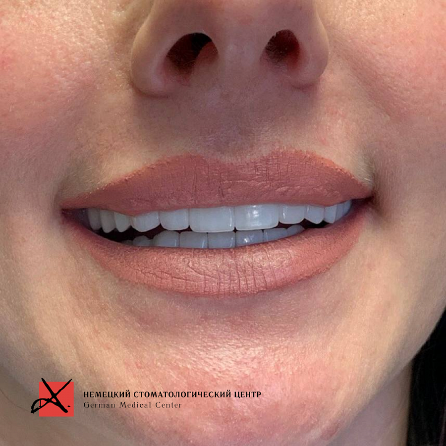 Была проделана работа по удлинению передних зубов и тотальная реставрация с цветом блич 1.