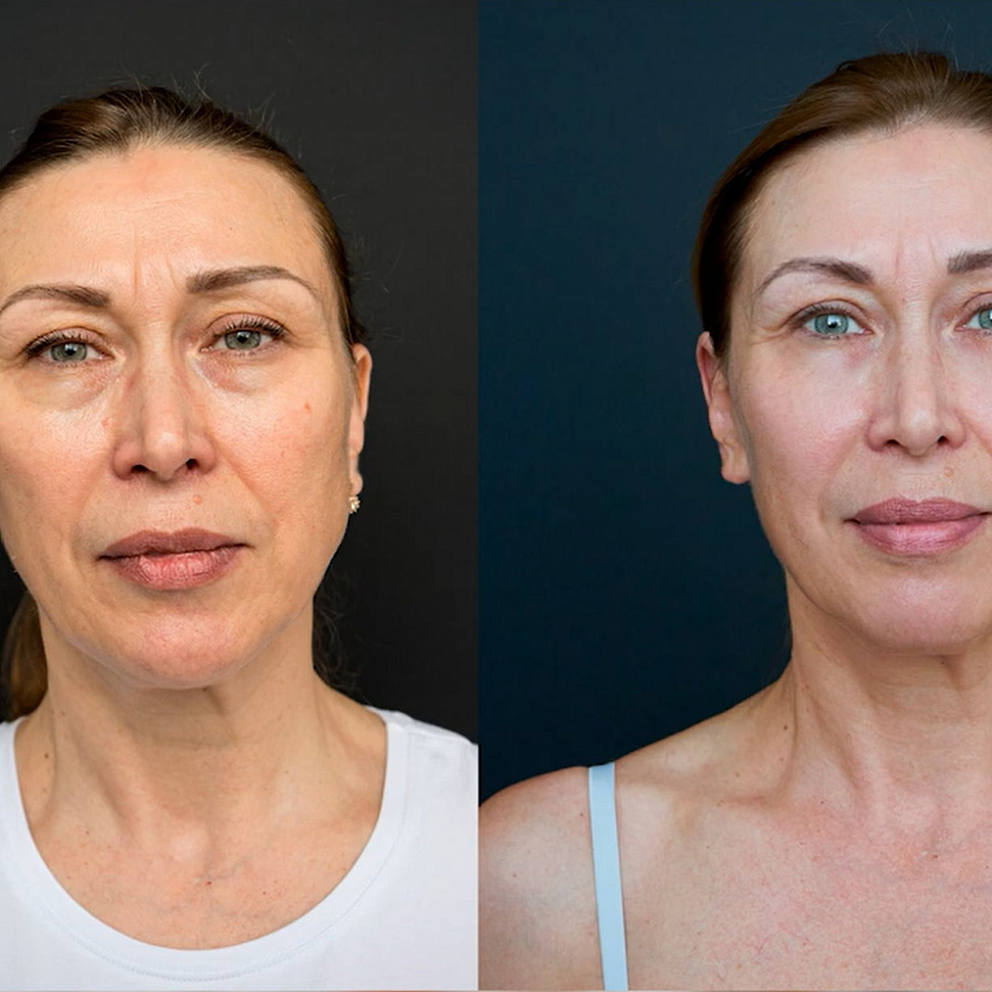Результат: укрепление овала лица, уменьшение глубины морщин, уменьшение второго подбородка, улучшение цвета лица и текстуры кожи.