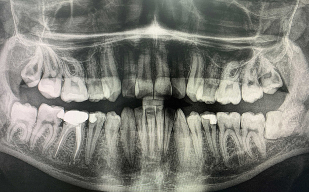 Пациент направлен врачом-терапевтом для удаления зуба 46 (нижний шестой зуб справа) и одновременной постановки имплантата.