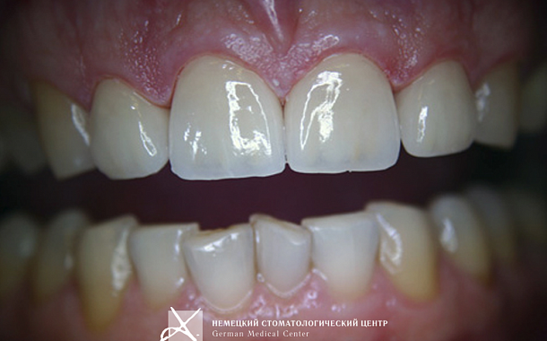 Пациент обратился с жалобами на некрасивый внешний вид верхних центральных передних зубов.