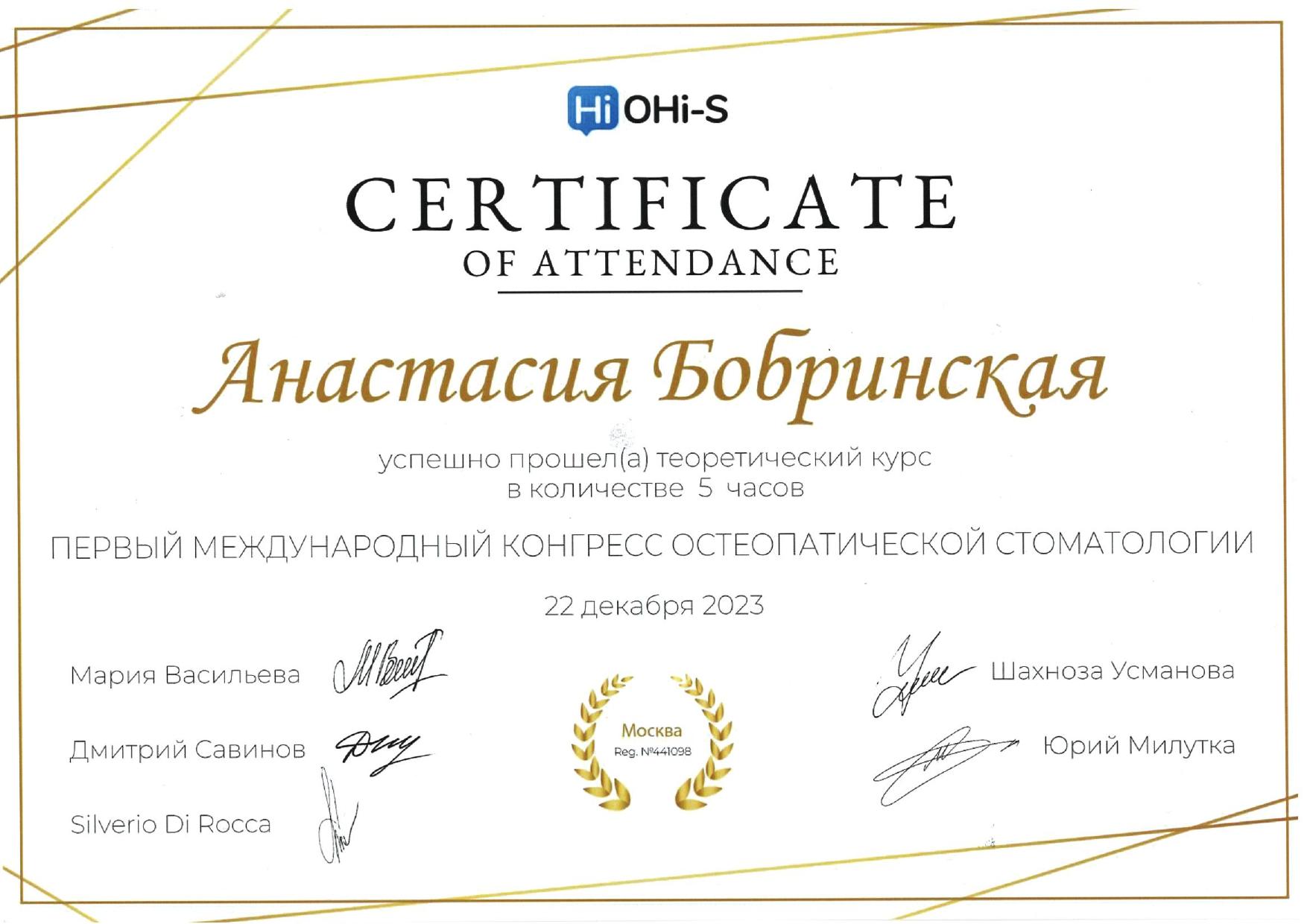2023 г. «Первый международный конгресс остеопатической стоматологии»