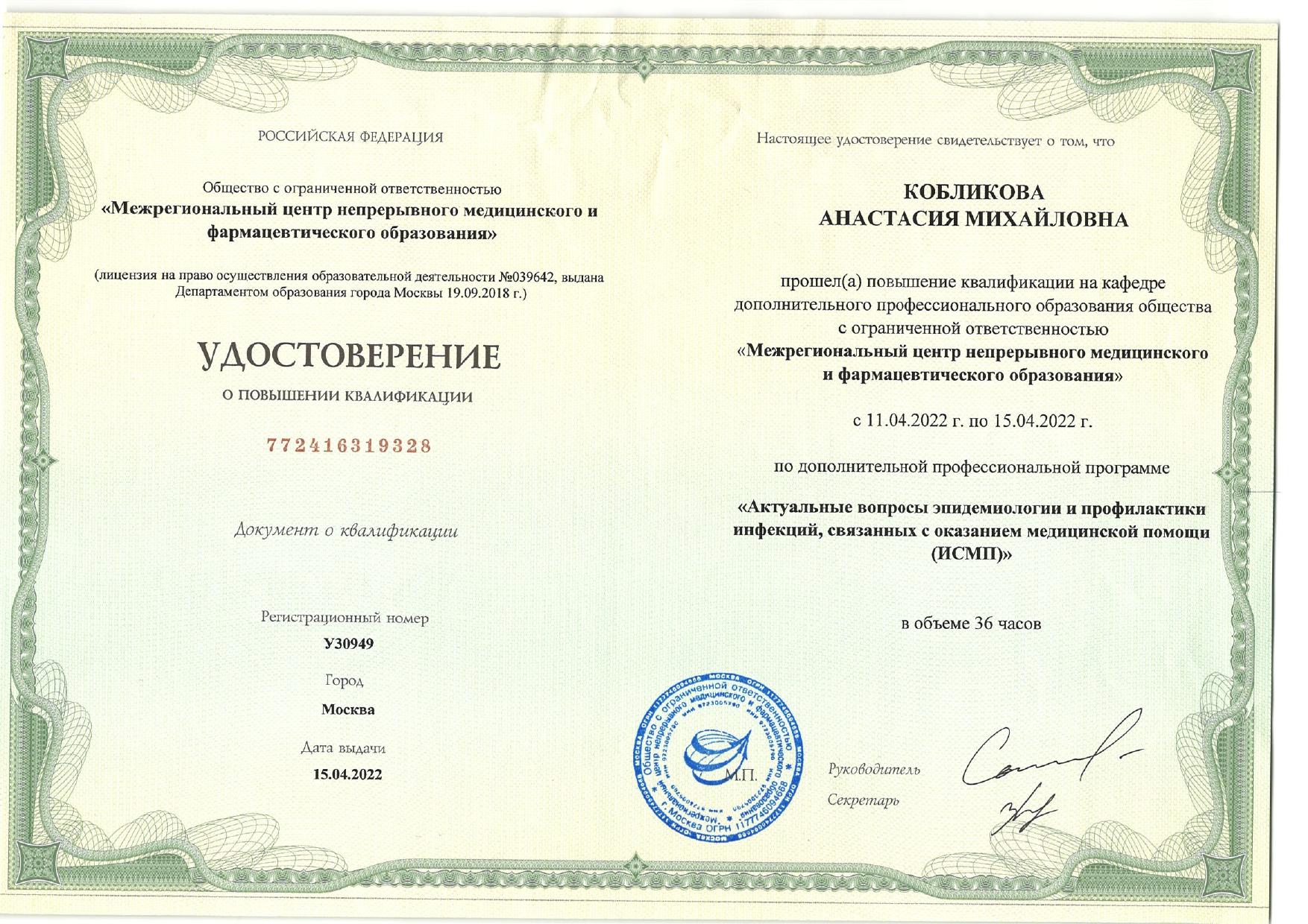 Отзыв с Prodoctorov о Кобликовой А.М.