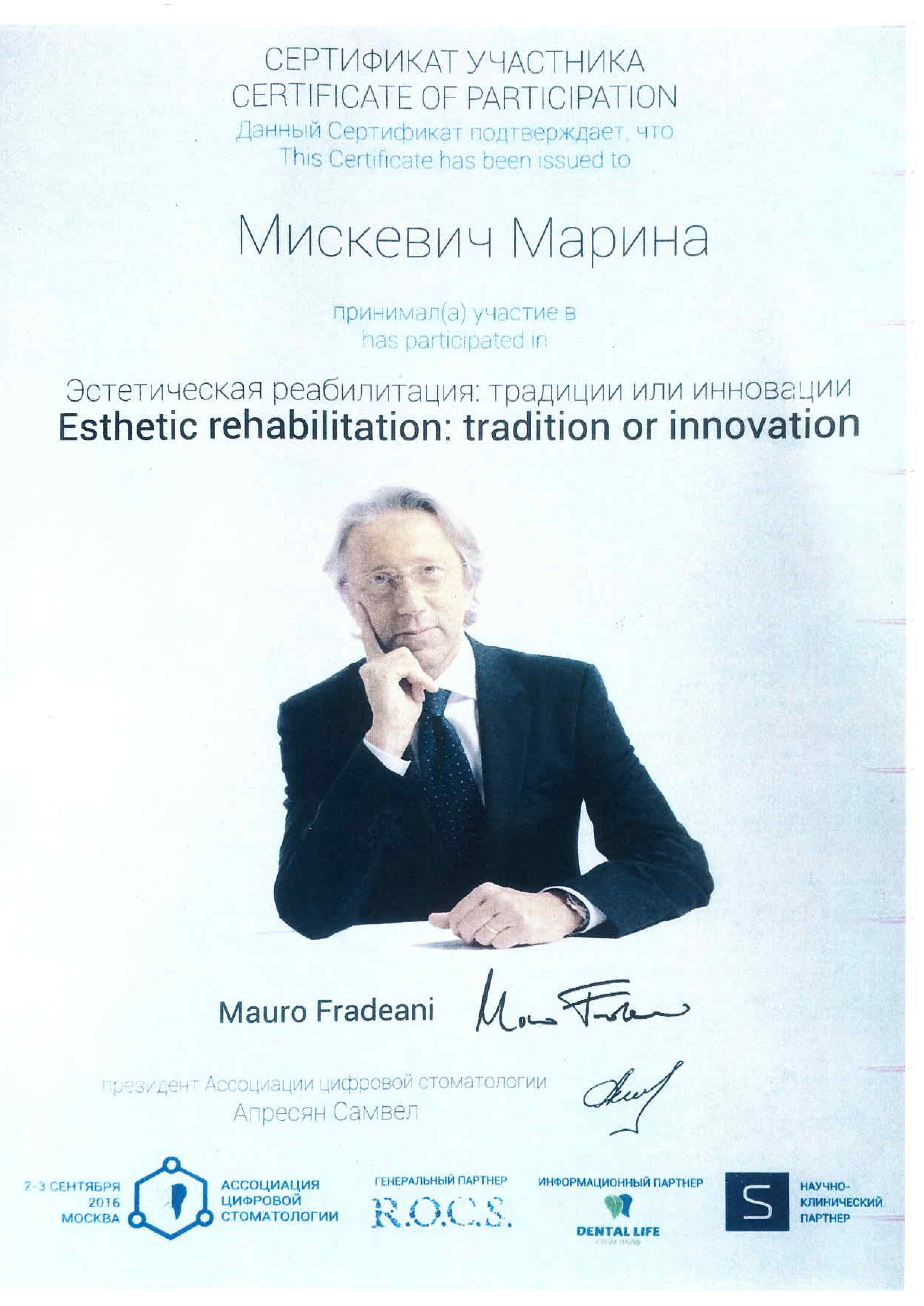 2016 г. Мауро Фрадеани. «Эстетическая реабилитация: традиции и инновации».