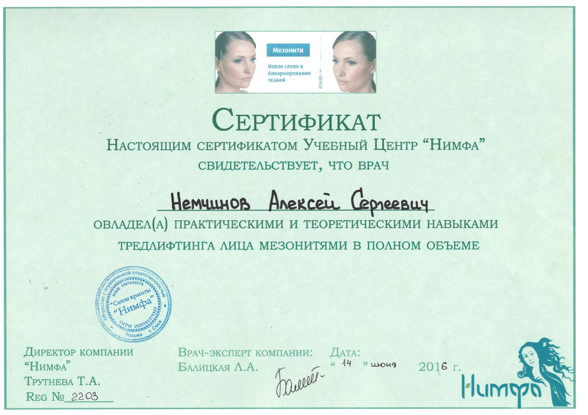 2016 г. Семинар «МЕЗОНИТИ. ЭФФЕКТИВНАЯ КОРРЕКЦИЯ НИЖНЕЙ ТРЕТИ ЛИЦА»