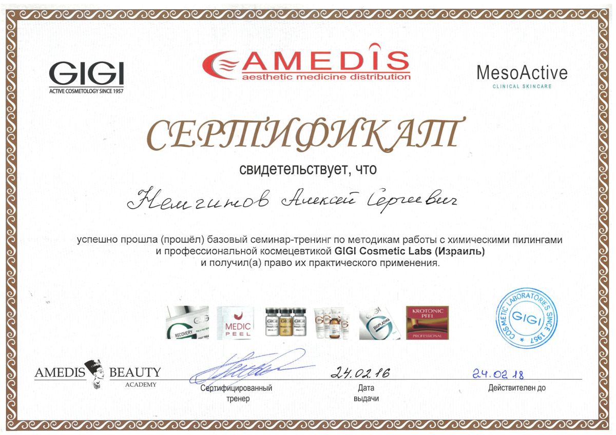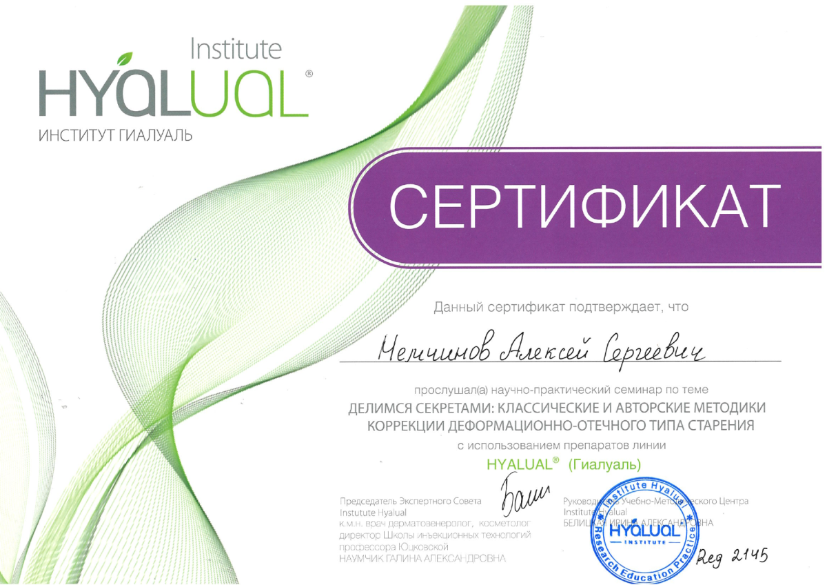 2017 г. Обучение «Инновационные методики пептидной anti-age терапии в косметологии с использованием препаратов HydroPeptide».
