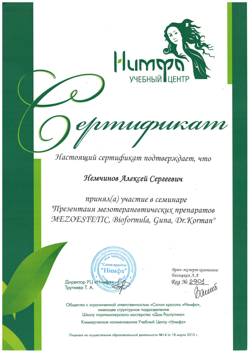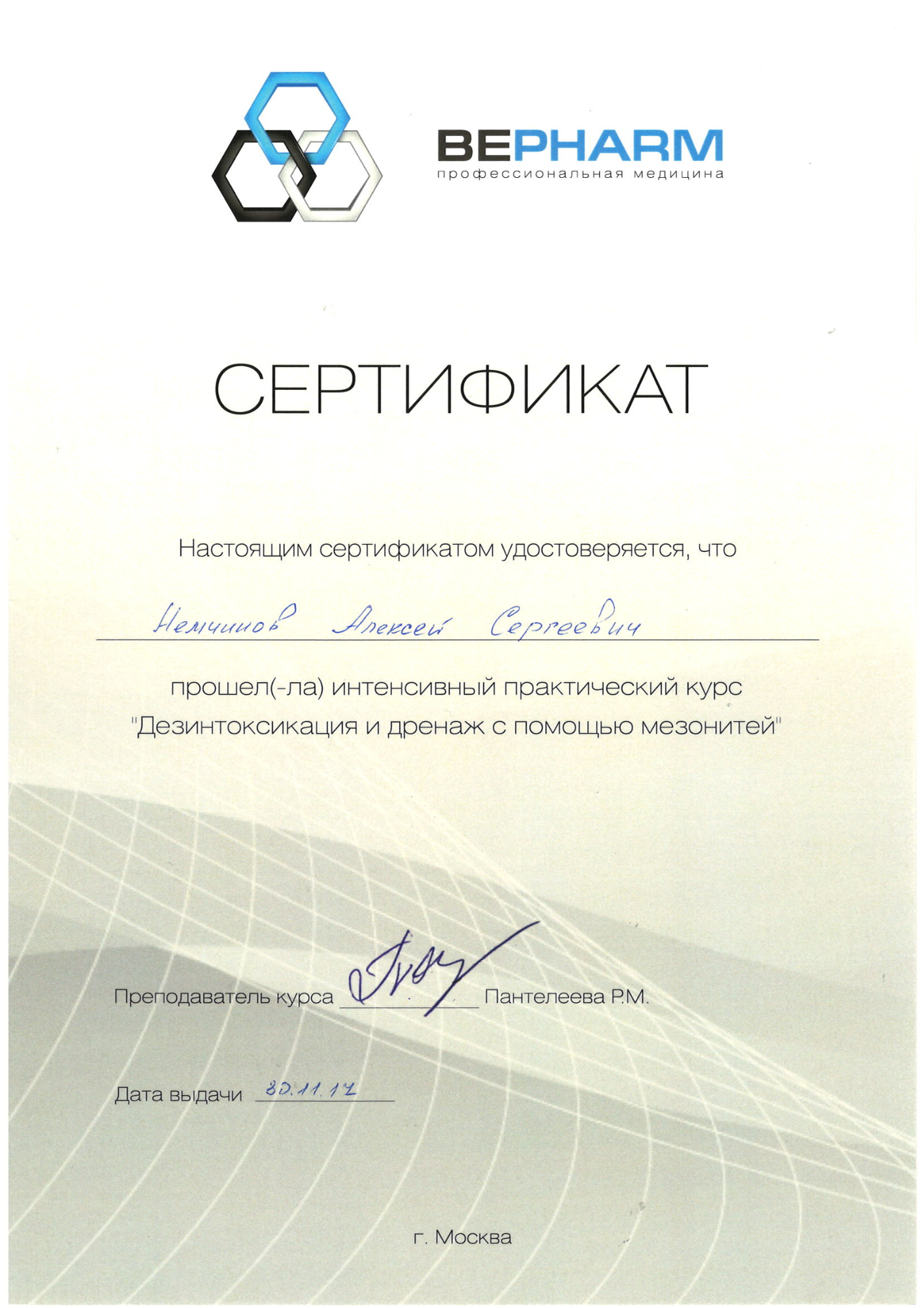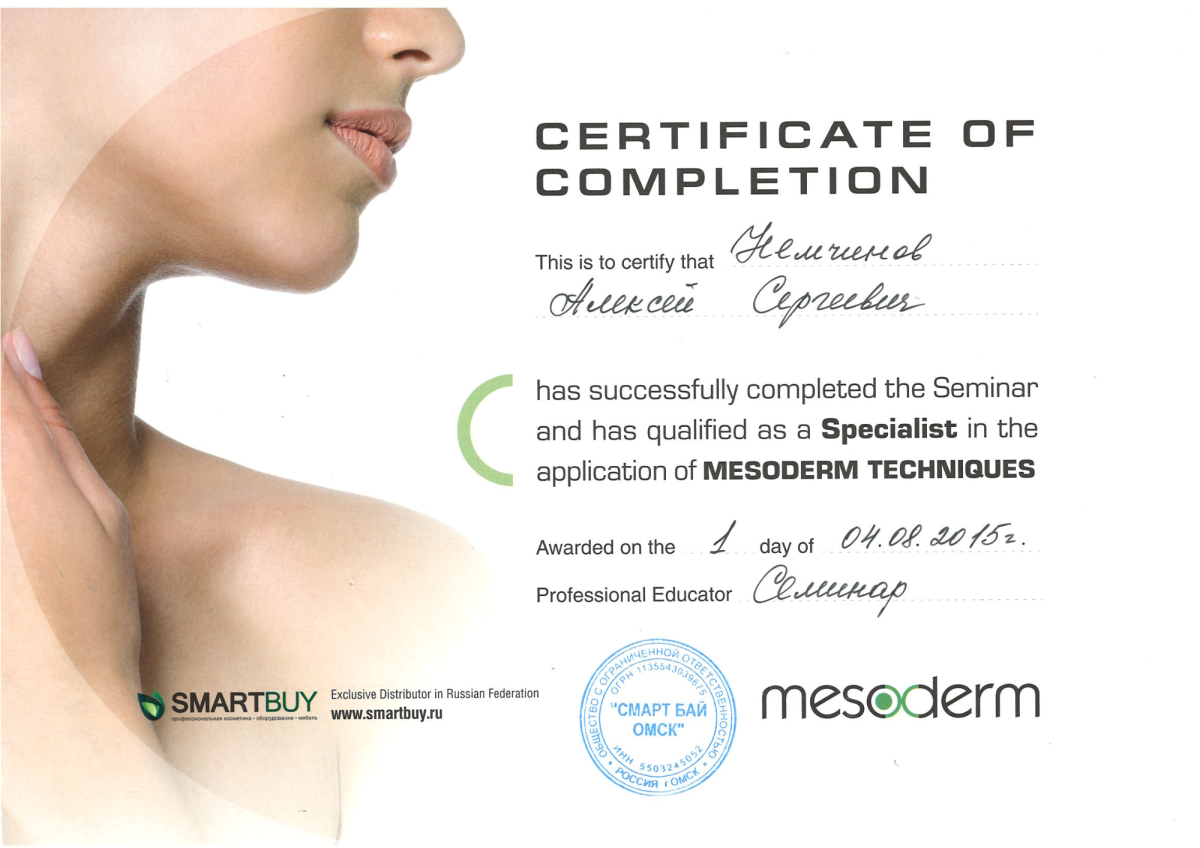2016 г. Курс «Биореструктуризация коди с использованием препаратов Meso-Uharton с правом использования препарата Р199 в клинической практике»