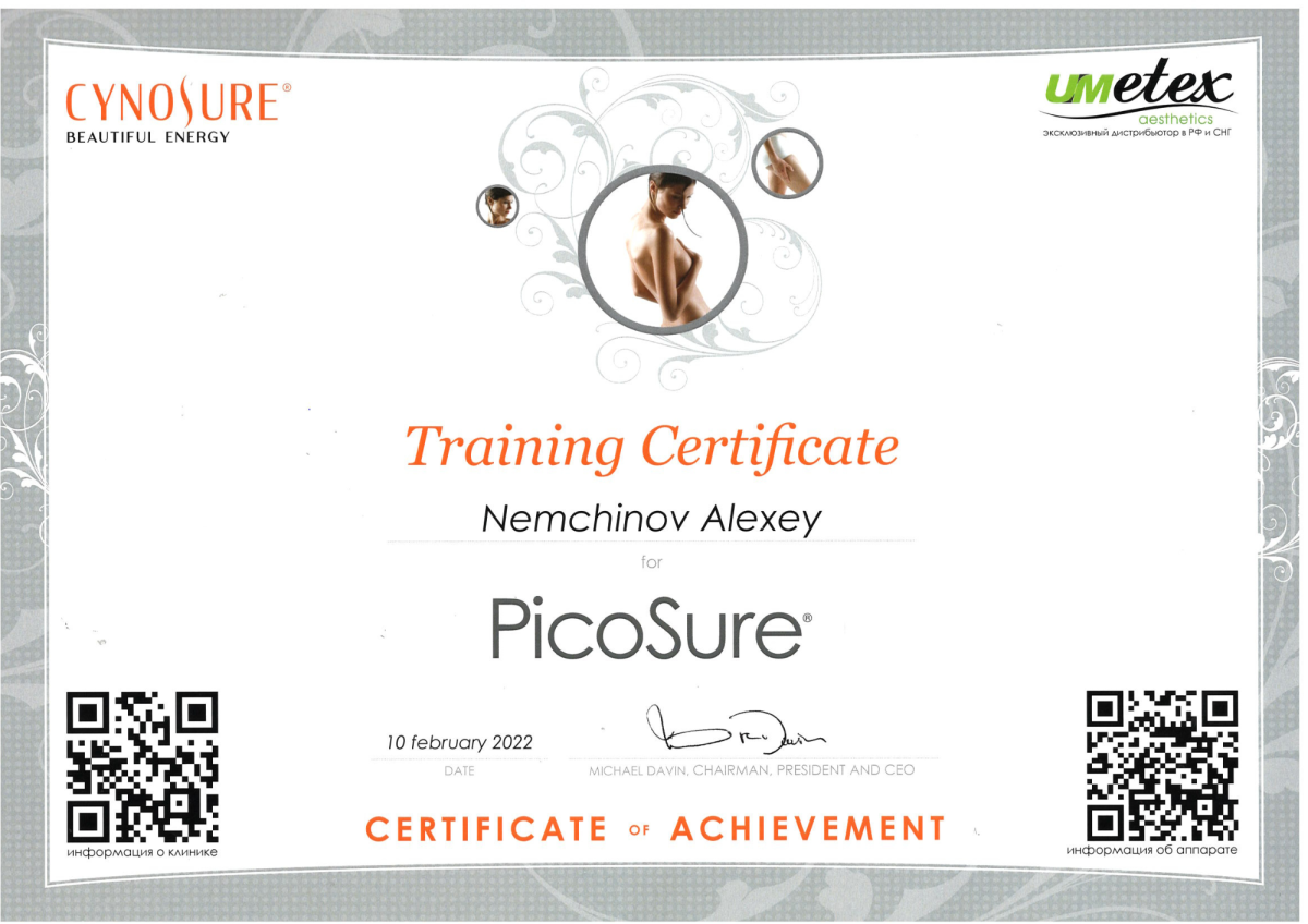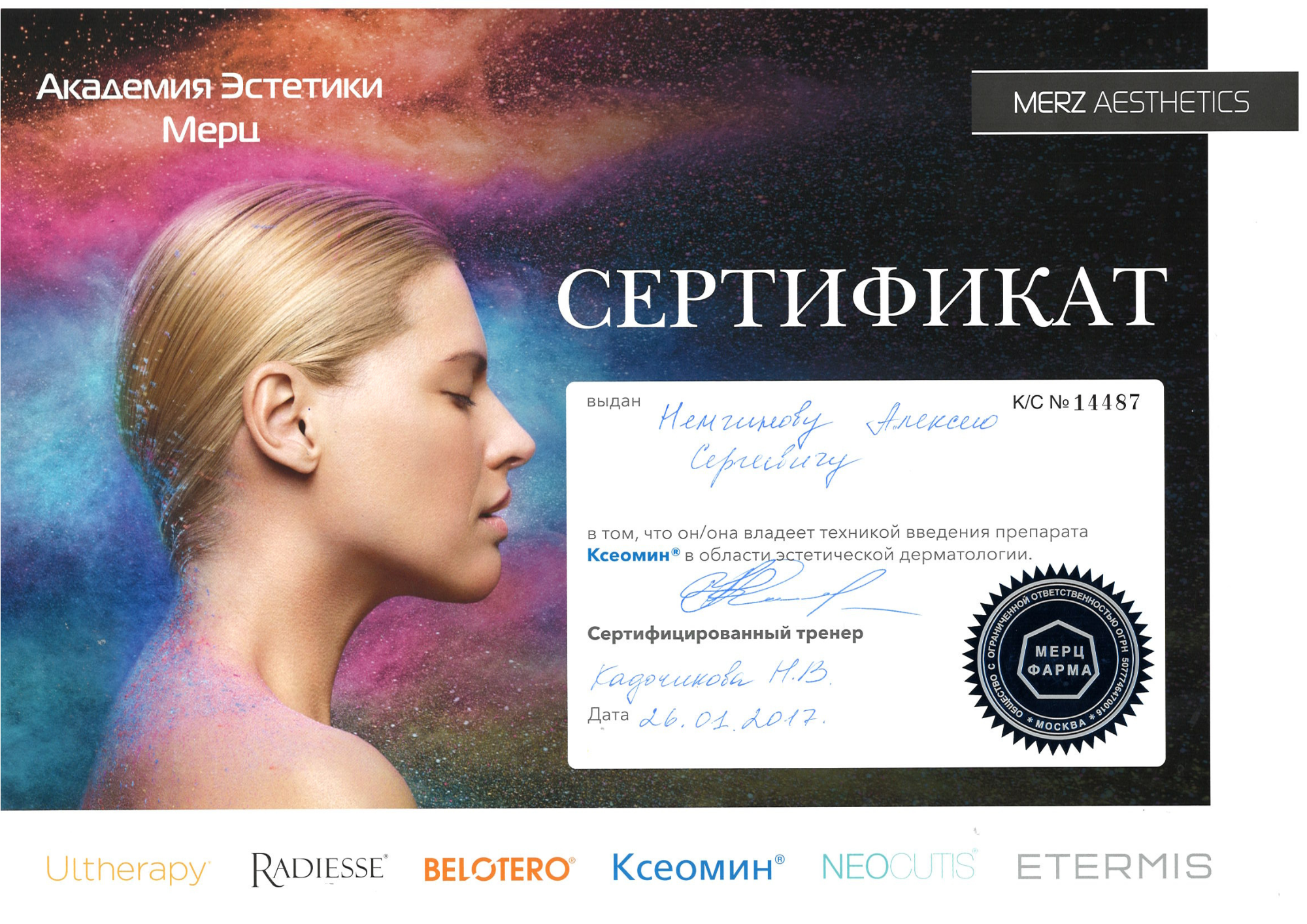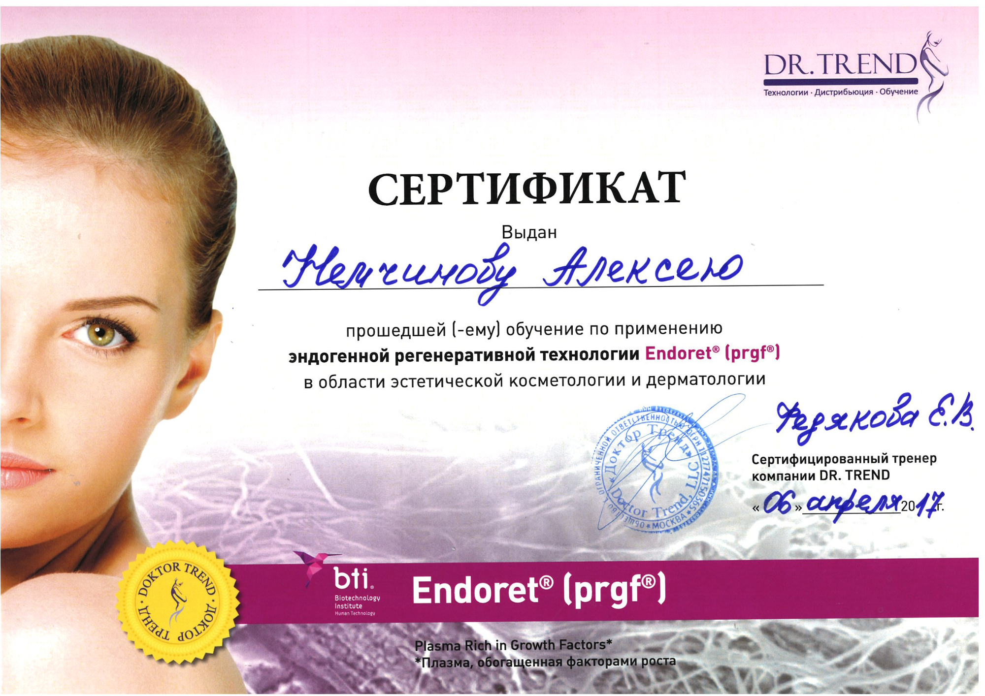 2017 г. Обучение по применению эндогенной регенеративной технологии Endoret® (prgf®) в области эстетической косметологии и дерматологии.