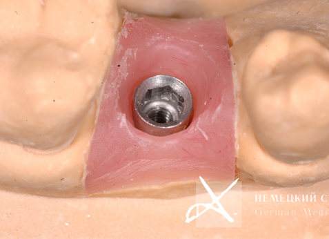Учитывая тот факт, что диаметр имплантата практически всегда вынужденно меньше диаметра восстанавливаемого зуба в данной анатомической области, чтобы получить максимально эстетический и функциональный результат, было сделано: