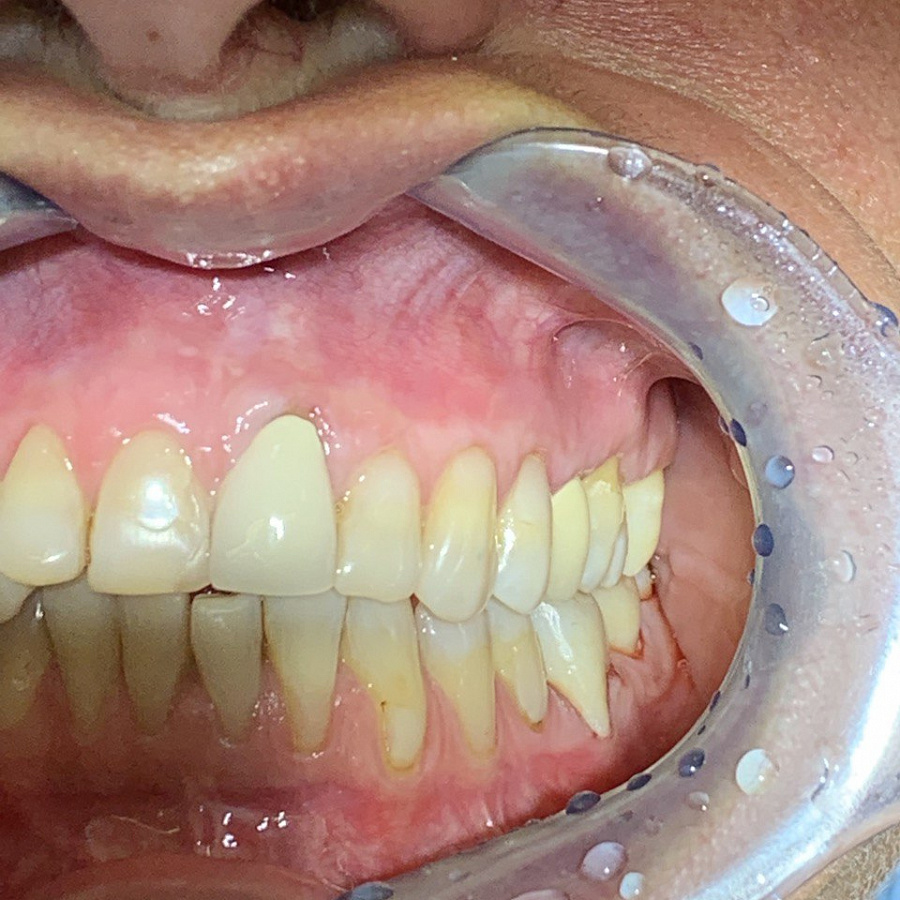 Поставлен диагноз генерализованная рецессия десны в области зубов верхней и нижней челюстей, аномалии положения зубов