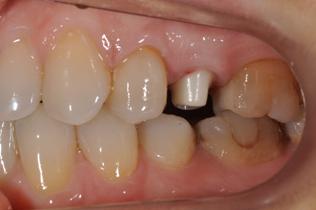 Проведено 'стетико-функциональное восстановление зуба №25 на импланте с использованием индивидуального абатмента из оксида циркония и коронки с каркасом из аналогичного материала. отсутствия одного зуба.