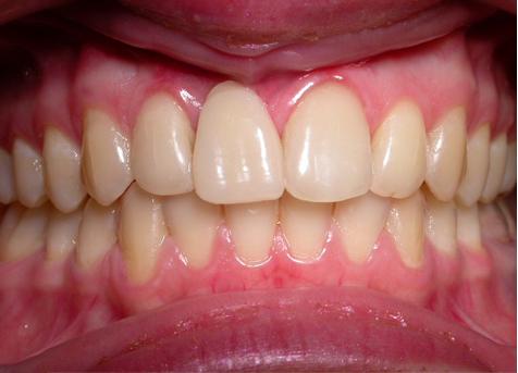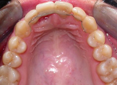 Результат ортодонтического лечения продемонстрирован с фиксацией временной фасетки в области 11.