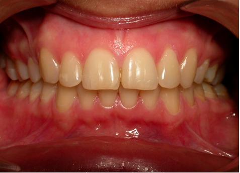 Лечение проводилось с помощью вестибулярных керамических брекетов, было завершено в течение 15 месяцев.