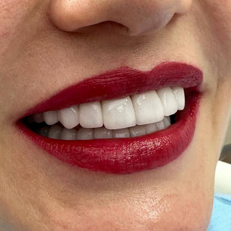 Пациентка осталась очень довольна результатом, впервые в жизни купила себе красную помаду и научилась улыбаться!