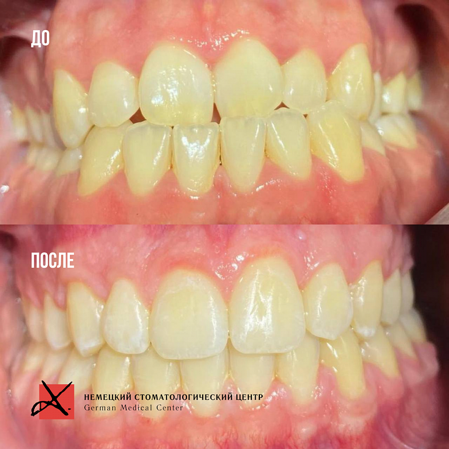 После проведенной диагностики пациенту было предложено комплексное лечение, включающее несколько методик и брекеты. В результате мы получили: