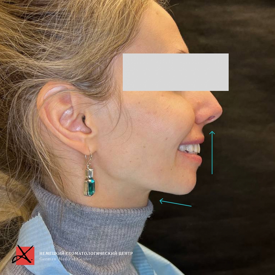 Пациентка пришла жалобами на неправильный прикус, который вместе с эстетическим дискомфортом и выраженной асимметрией лица доставлял ряд более серьезных проблем: головные боли, боли в шее и в суставах.