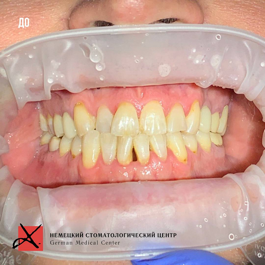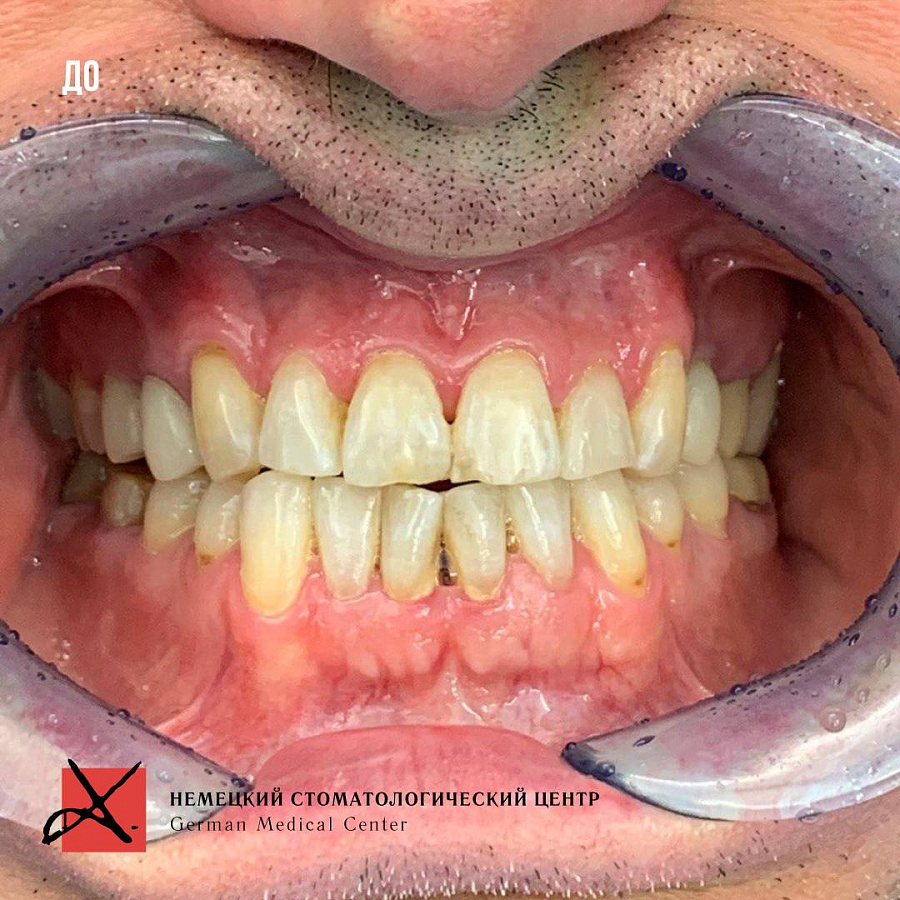 В итоге из-за неправильного прикуса стираемость зубов прогрессировала и нам удалось убедить пациента заняться данной проблемой серьезно.