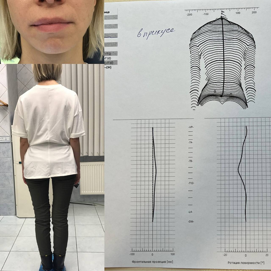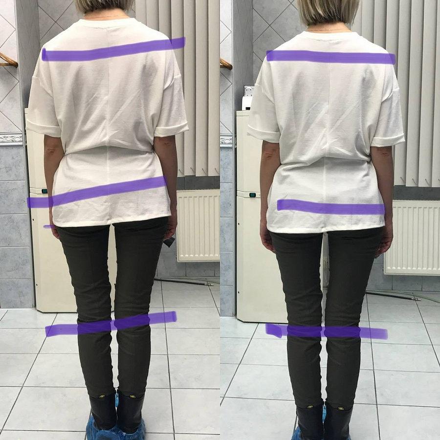 Был использован ортотик и коррекционные стельки, что позволило восстанавливить симметрию лица и тела. Результаты на фото говорят сами за себя